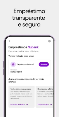 Osim toga, Nubank misli na vašu sigurnost i budućnost. Zaštitite svoju imovinu i najdraže osobe uz fleksibilna osiguranja, a pristupite i povoljnim, transparentnim zajmovima prilagođenim vašim potrebama. Omogućite i mlađima od 18 godina vlastiti račun kako bi rano naučili upravljati novcem. Uz sve to, tu je i ljudska korisnička podrška dostupna 24 sata dnevno, svaki dan u tjednu, spremna pomoći. Vaša sigurnost je prioritet: uz vaše dopuštenje, Nubank nudi i zaštitu od prevara putem telefonskih poziva, identificirajući i blokirajući sumnjive brojeve.